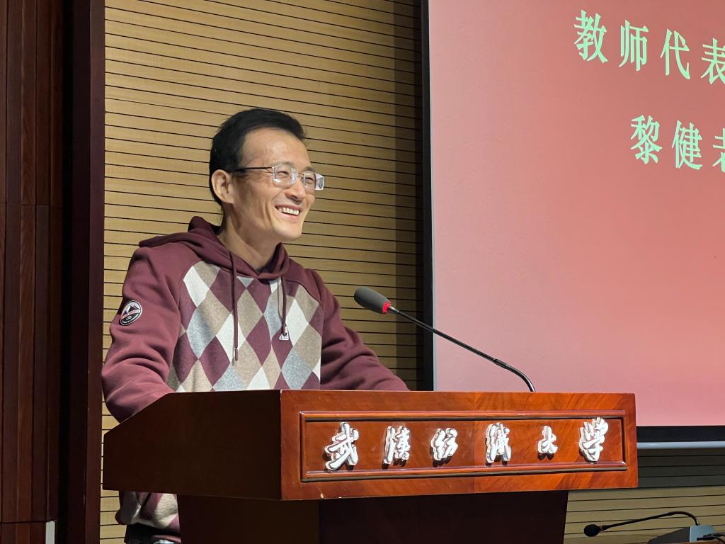 接着,最美班主任黎健老师作为教师代表发言,他首先表达了对2022级全体新生到来的喜悦之情,同时以如今的大背景为话题引出对新生们的衷心祝愿和期许,鼓励同学们树立终身学习的认知态度,掌握自主学习的方法,拓宽国际视野,把握好学习和生活的均衡。随后,2022级新生代表余欣桐、2020级老生代表杨思韬分别从新生老生的不同视角,表达了对大学生活的美好期许、目标规划以及中肯建议。