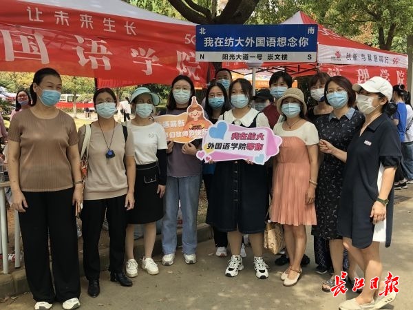 而另一位前来报到的河南新乡新生周艳玲,现场在迎新处用家乡话和英语推介自己的家乡,“我们那里山多水多,欢迎大家去我的家乡,中不中?”惹得学长学姐纷纷鼓掌。湖北黄石籍新生戴韵冉也推荐家乡,“漫步黄石的磁湖,你会很惬意!”