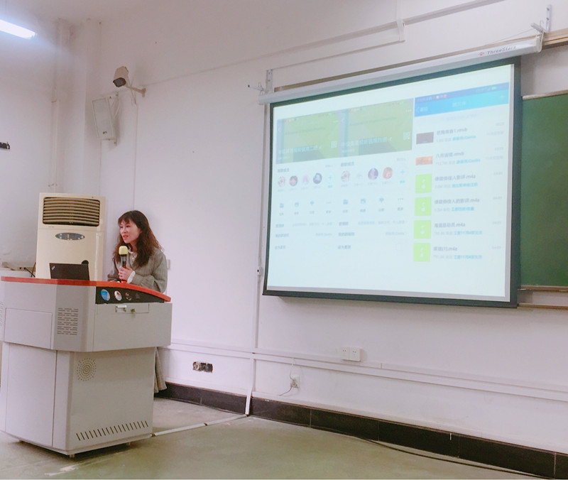 廖春燕老师以大学英语语言拓展课程---中级英语视听说教程为例,先后介绍了教材选择、教学方法运用、“雨课堂”平台准备与学生分组情况、教学目标设定与教学步骤。