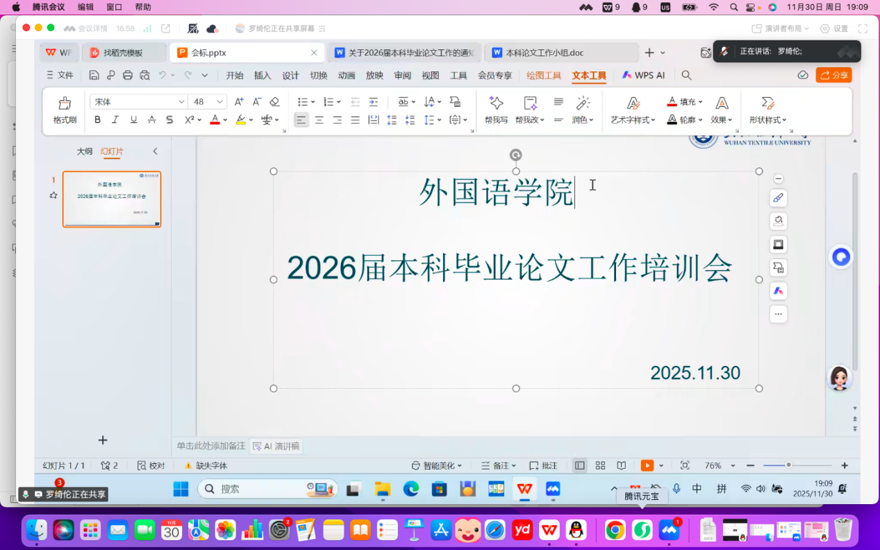 11月30日晚7点,williamhill官网通过腾讯会议平台举行了2026届本科毕业论文工作培训会。williamhill官网26届本科毕业论文指导教师参加此次会议。