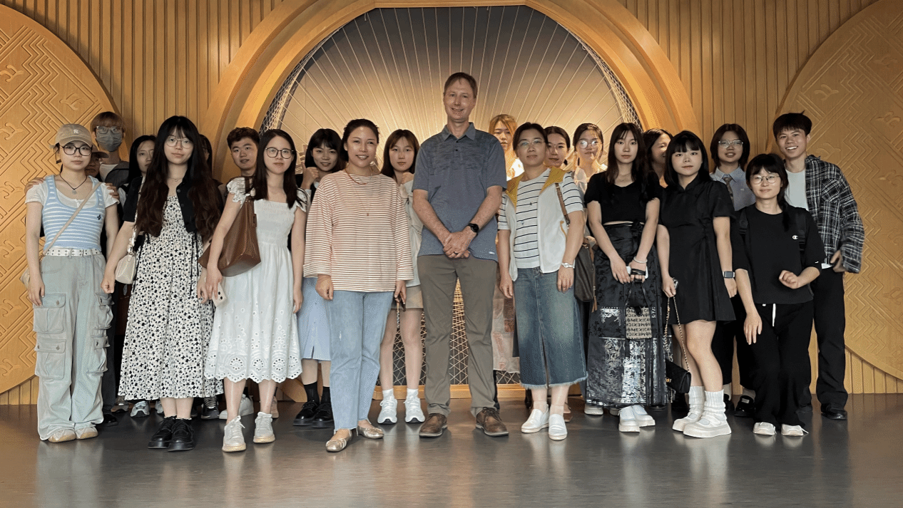 5月7日世界著名科学家来鄂讲学计划专家美国爱达荷州立大学的语言学家Prof. Brent Wolter与williamhill官网MTI研究生一道赴我校荆楚纺织非遗馆开展交流。williamhill官网研究生导师郑亚娟,服装学院郎丽老师参与交流。