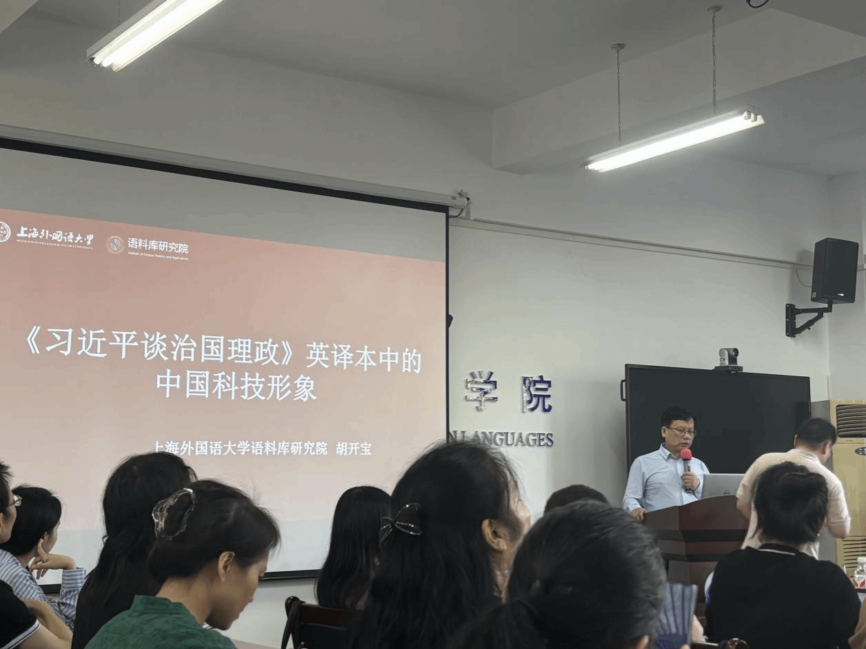 在学术研究方面,胡教授介绍了基于该平台的一项重要研究成果 —— 对《习近平谈治国理政》英译本中中国科技形象的分析。研究依托平台丰富的资源,依据 Fairclough 的三维话语分析框架和批评翻译学理论,对译本科技话语的语言特征进行了细致剖析。通过对高频名词、高频动词和情态动词的分析,以及对索引行的深入研究,揭示了《习近平谈治国理政》英译本所构建的中国科技形象。研究发现,该译本塑造的中国科技形象呈现出积极有为、重视创新与科技革命、重点攻克核心技术、坚持科技发展面向经济社会发展和民生需求、追求合作共赢等特征。这些特征的形成与源语的话语风格以及译者翻译策略和方法的应用密切相关。