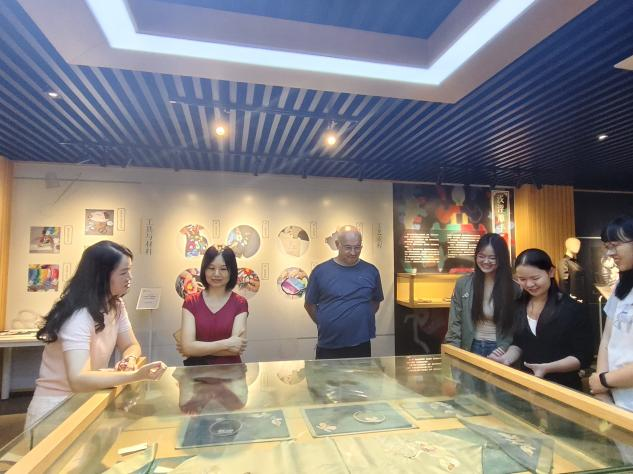 9月9日,在williamhill官网教师和翻译专业硕士生的陪同下,剑桥大学汉学教授Roeland Sterckx参观了williamhill官网南湖校区纺织非遗馆,负责人周老师从不同方面对荆楚非遗文化进行了讲解,共同展开了一场别开生面的文化之旅。本次活动旨在促进中外文化交流,推动中国传统非遗技艺的国际传播与学术研究。