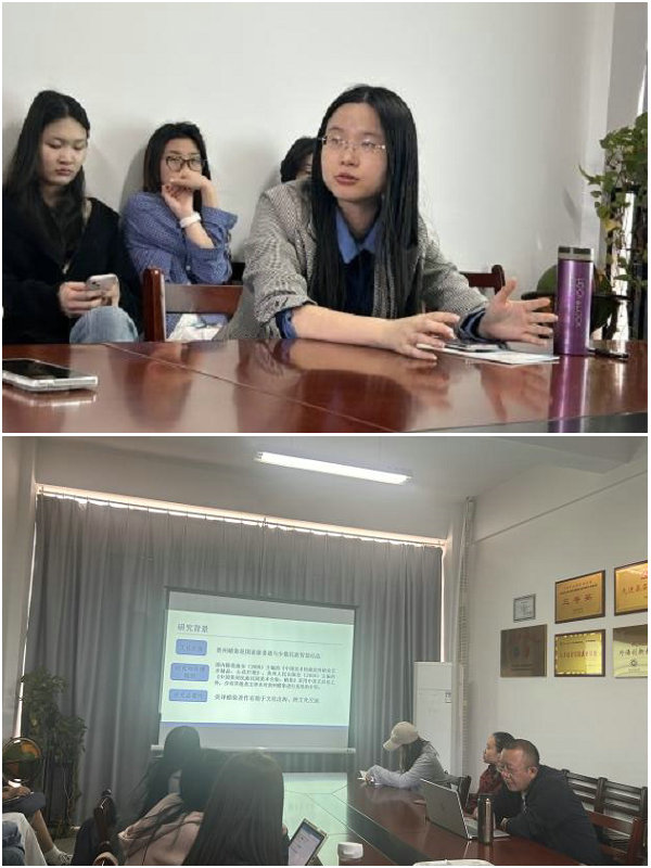 随后,2025 级 MTI 研究生胡玉洁以《译见蜡染:非遗外宣中的英译》为题,开展了她的分享。她聚焦贵州蜡染这一国家级非物质文化遗产,围绕非遗外宣英译实践展开探讨,结合《中华锦绣贵州蜡染》文本,从词汇、句法、语篇层面分析翻译难点,提出适配非遗文化传播的英译策略,为纺织类非遗的跨文化传递提供了实践参考。