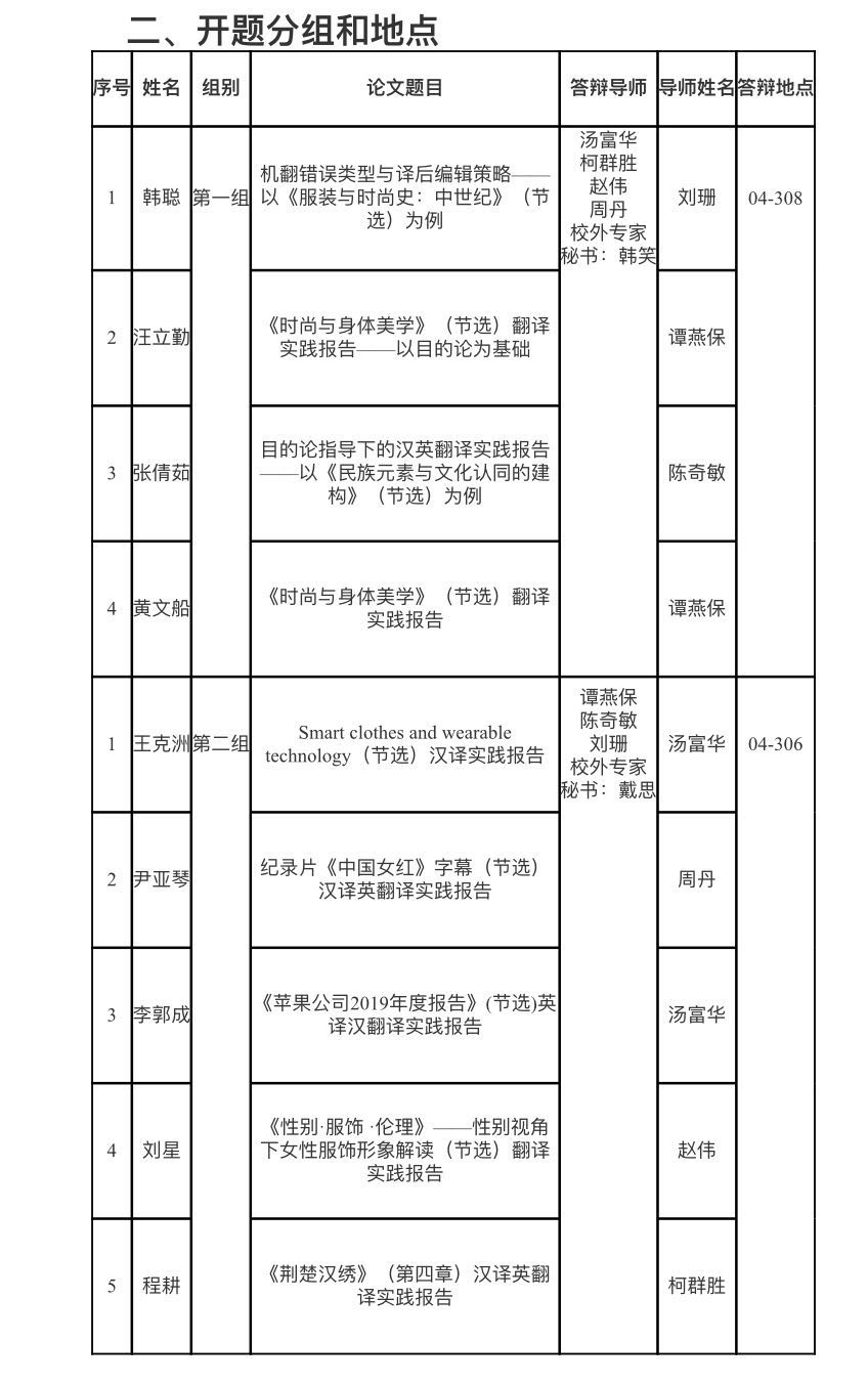 williamhill官网19级翻译硕士(MTI)专业学位研究生毕业论文开题报告会
