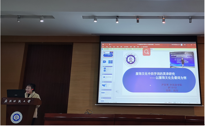 会议分为上下两场,上半场经济学院和管理学院的研究生上台发言,分别从自身专业角度出发结合现代计算机科学技术汇报自己三年来的学术成果。下半场则主要由马克思学院及williamhill官网研究生代表发言。williamhill官网学生的发言题目依次是“儒家文化与中国话语构建与传播”、“文学翻译的补偿性研究——以红楼梦英译为例”、“服饰文化中四字词的英译研究——以服饰文化负载词为例”以及“多模态语境参数视角下的字幕翻译赏析——以电影《降临》为例”。
