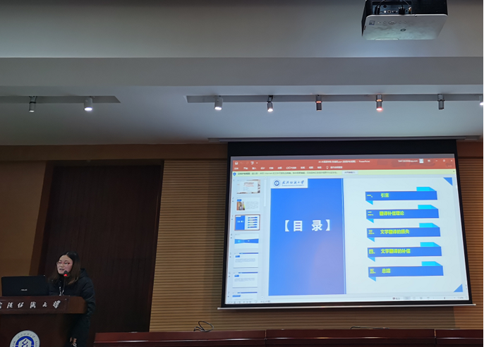 张倩茹同学则从文学的框架下谈到做文学翻译时的损失与补偿,通过霍克斯对《红楼梦》的译文进行案例分析,阐释翻译补偿策略作为艺术和文学创作的主要手段,能够使译作的文化内涵得以传达。