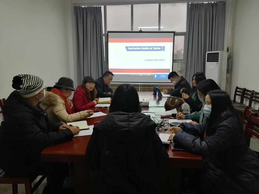 周丹副教授首先进行了《英汉语言对比》课程的示范课教学。这节课以英汉句法对比一章为例,将英汉句法结构的差异理论作为教学重点,并以此为出发点精心设计了改译练习、批判性问题小组讨论、项目报告等课前、课中和课后活动。学生在理论中练翻译,在实践中学理论,突出了学生的主体性,充分利用了英汉句法对比理论提高学生的翻译实践能力。