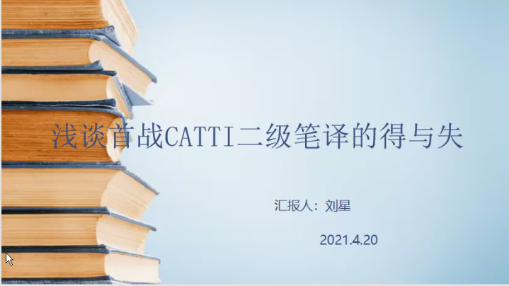 刘星同学分享了CATTI考试备考的经验,从历年话题、真题来源、机考特点、实例分析和经验教训几方面,强调了关注时事热点、积累背景知识的重要性,提醒同学们应广泛阅读,保持中英文相关题材的输入。刘星同学认为,汉译英的关键是英文理解、逻辑梳理和句式搭建,鼓励学弟学妹们平时养成良好的翻译习惯、巩固语言基本功。