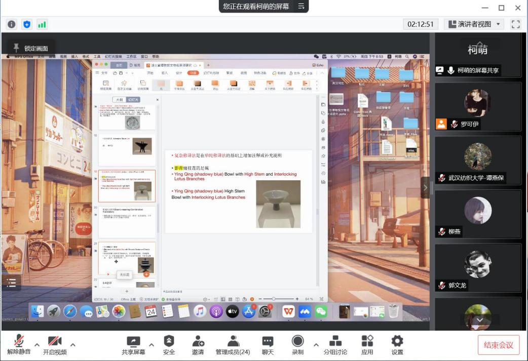 随后刘珊副教授进行了点评。针对柯萌的汇报,她给出了这样几点的点评。1、肯定了柯萌同学的研究精神、查证精神和批判性思维。2、肯定了选题并介绍了瓷器相关语料库和图料库建设情况。3、希望她能够坚持翻译查证研究。针对柳燕的汇报,刘珊老师也对强势动词进行了解惑。