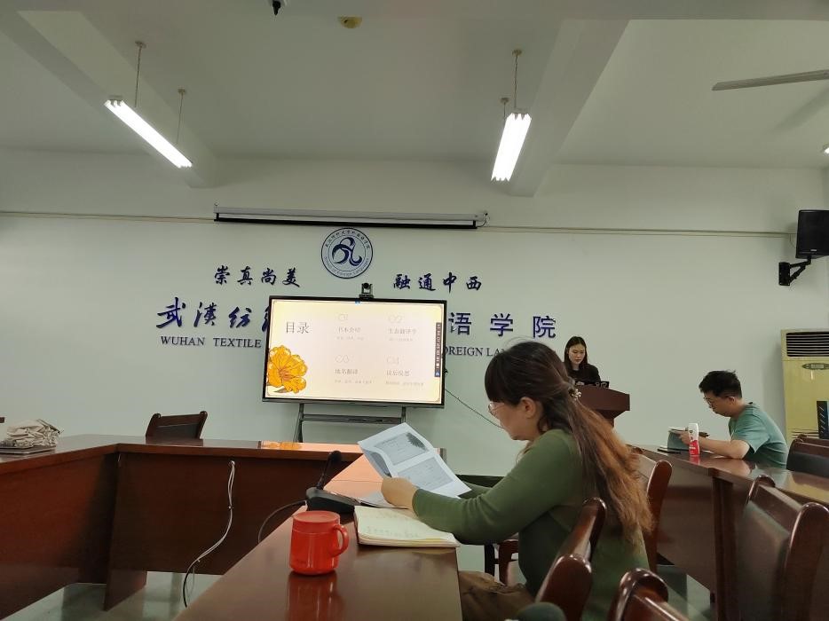 本次论坛的学生主持为柯萌和郑震同学,主讲人是21级黄雨萱、代焦、涂晶晶,论坛的主题是“文学翻译”。论坛分为三个环节。首先,主讲人进行主题汇报,然后是自由讨论时间,最后与会导师进行点评。
