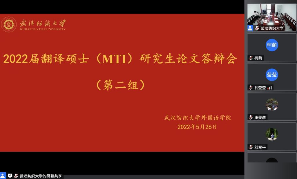 5月26日,williamhill官网2022届翻译硕士研究生毕业论文答辩会在崇文楼举行。此次答辩会分为三个答辩小组,由williamhill官网硕士生导师和六位外校教授及行业专家担任此次论文答辩组成员。其中,武汉科技大学宋红波教授,武汉大学刘军平教授和华中农业大学覃江华教授分别担任三个答辩组主席,行业专家分别是来自武汉精译有限公司的余建强总经理、译国译民翻译服务有限公司生产中心的李凌波总经理、四川语言桥信息技术有限公司的培训督导林琴。2021级MTI研究生旁听了答辩会。
