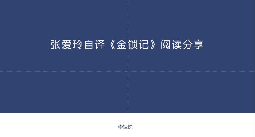 第三位汇报人李祖悦同学的主题为张爱玲自译《金锁记》阅读分享。李祖悦首先简介了作者及该作品的背景和基本信息,然后给出了该书的翻译理论框架,向我们介绍了Eco-translatology这一理论。随后,李祖悦通过介绍张爱玲在《金锁记》中的一些翻译案例,侧重讲解了Multi-dimensional Adaptive Selections and Transformations理论在《金锁记》中的运用,并讲述了她在阅读和翻译中的所思所获。