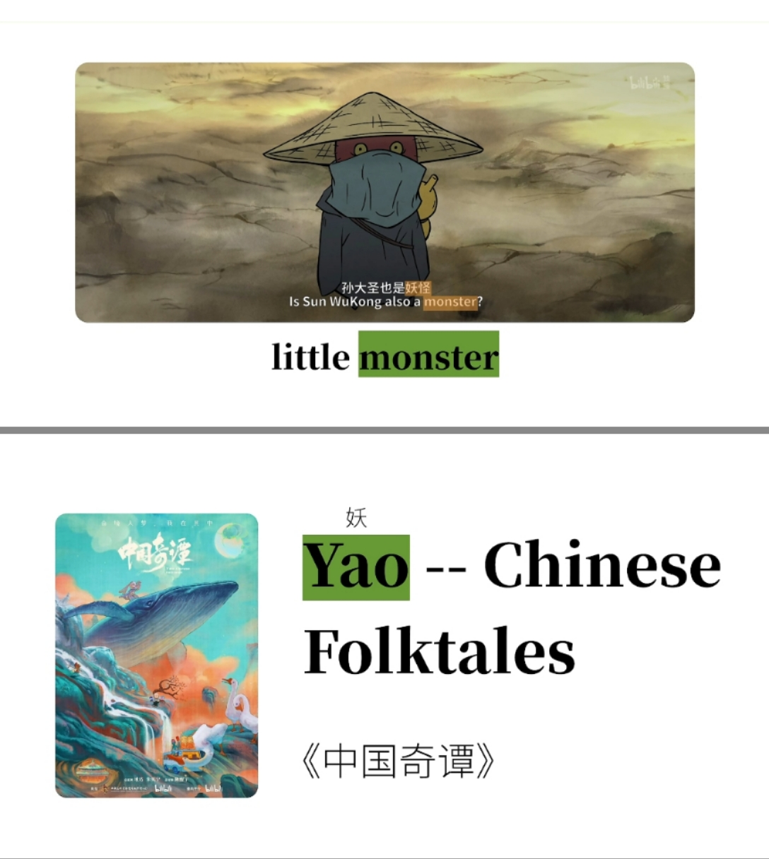 第一位汇报人21级MTI研究生陈家乐同学分享的是《中国奇谭》的小妙译,以这部大火的国潮动画为素材分析它的翻译。陈家乐以小标题——小妖怪的夏天中妖怪的翻译开启话题,激起了大家的激烈讨论。在此之后,他分享了剧中对妖怪、小妖、妖精爷爷、大王等词语的翻译。最后,他展示了《中国奇谭》的一些妙译,交流了对中国文化传播的感想,鼓励大家深度了解中国文化,讲好中国故事。