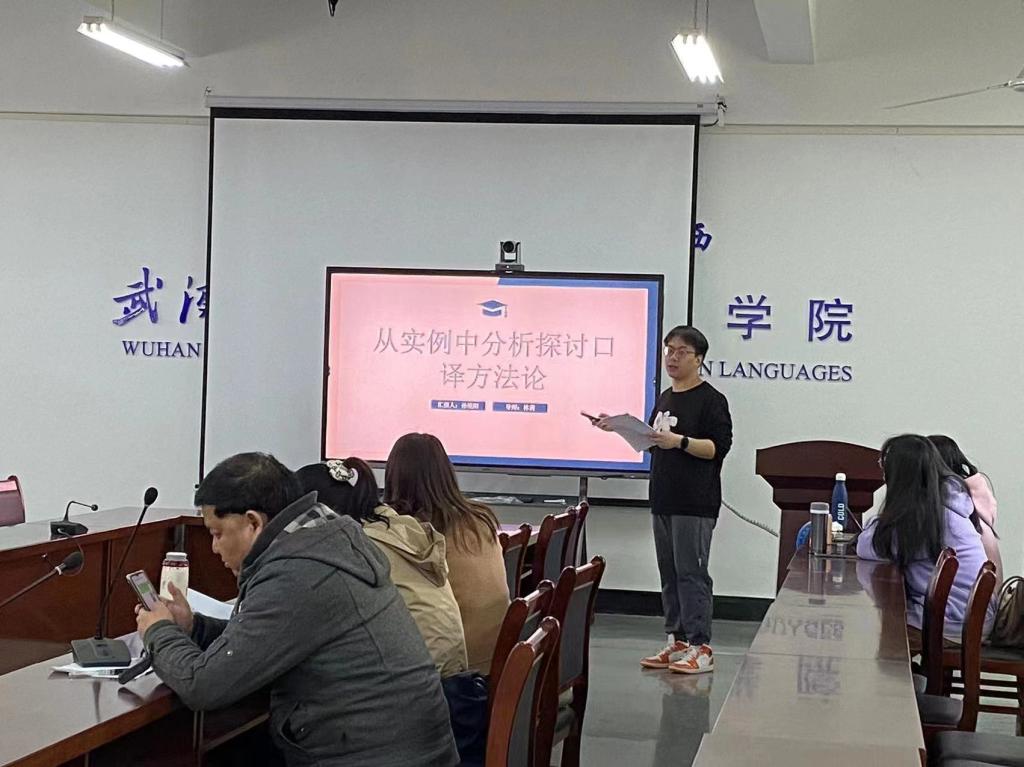 第三位汇报人杨淑颖的主题是影视翻译的语言特点及翻译技巧研究。她的分享分为四个部分:研究目的、影视台词的特点、案例分析、影视翻译技巧总结。首先她简要概述了德国语言学家汉斯•弗米尔的翻译目的论,目的性、连贯性、忠实性三大原则并具体解析说明。她指出影视作品翻译作为现今语言文化传播的重要桥梁之一,影视翻译具有非常重要的研究价值。她总结出影视翻译具有调动性、瞬时性、简洁性三大特点,并详细分析解释。随后她以三大原则为划分,结合具体的影视翻译台词为例进行分享讨论。最后,她总结出影视翻译中要注意的五大点:1.根据文化因素采用相应的翻译方法;2.弄清角色的性格特征,使翻译文本更贴合人物形象;3.注意影视的受众和类型,采取不同的翻译风格;4.根据不同的语境适当增减语言内容,保持影视画面的和谐;5.不断探索和应用各种个样的影视翻译技巧。