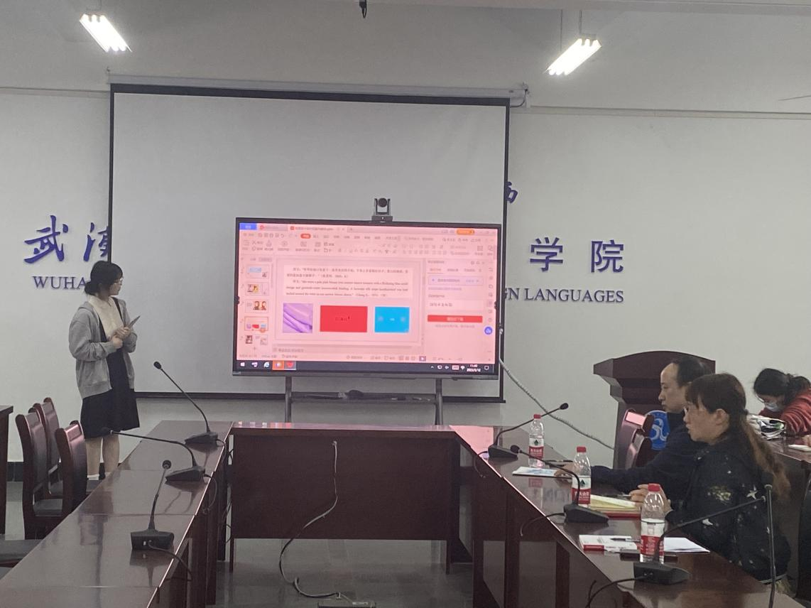 第二位汇报人吴静雯同学分享的主题是顺应论视域下的儿童文学翻译——以《杀死一只知更鸟》为例。她从作者、故事内容和主要人物三方面介绍了这本小说,然后向同学们讲解顺应论的相关知识,最后结合自译分析了高红梅、李超育译本的优点和缺点。