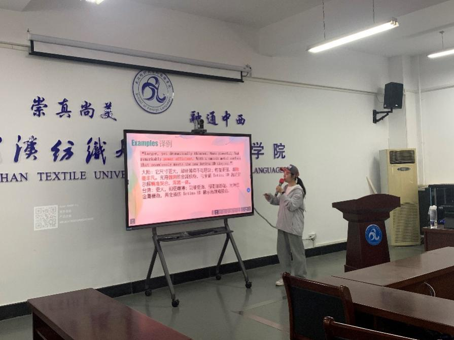 针对三位同学的分享,郑亚娟老师认为首先应做到选题角度要小。她肯定了王馨语在例子中结合了自己的分析和观点,但应该增加译例。针对秦笑眉的分享,郑老师指出,翻译广告语时,应该满足顾客的基本需求,同时也要考虑情感因素,比如满足高端人群自我实现的需求。她也指出翻译广告语时要做到押韵,比如押头韵和尾韵。郑老师表示,张涵钦同学的分享思路清晰,例子选取恰当,对语音偏离的讲解十分详细。