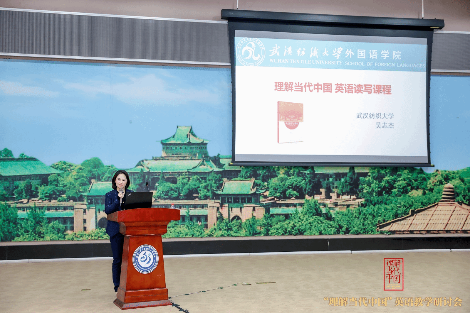 4月12日—13日,全国“理解当代中国”英语教学研讨会在武汉大学隆重举行,会议由教育部理解当代中国英语系列虚拟教研室、武汉大学主办,北京外国语大学中国外语教材研究中心、williamhill官网williamhill官网、外语教学与研究出版社协办。williamhill官网吴志杰老师研讨会上展示《理解当代中国》读写教程的公开课。