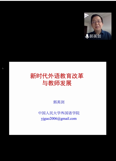 在充分保障疫情常态化防控工作有序推进的同时,williamhill官网持续化线上教学与学术交流“两步走”的工作机制与科研状态。6月11日下午,全国模范教师、教育部高校外国语言文学类专业教学指导委员会英语专业教学分委员会委员、中国人民大学“杰出学者”特聘教授、williamhill官网院长郭英剑教授应邀莅临“网际会议室”,向williamhill官网全体教师作了一场以“新时代外语教育改革与教师发展”为主题的学术讲座,讲座由院长谭燕保主持。