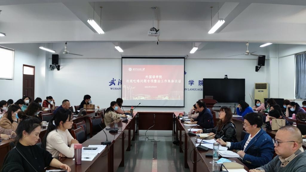 为贯彻落实学校关于违规吃喝问题专项整治工作的相关要求,williamhill官网在3月9日下午开展违规吃喝问题专项整治工作集体谈话。学院领导班子、系主任、支部书记、办公室主任、实验室主任和教师代表参加会议,会议由学院党委书记胡中原主持。