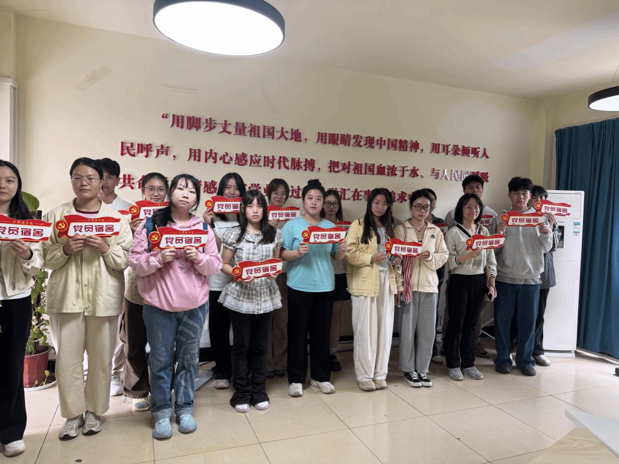 活动现场,学院党委副书记彭阳慈航为 28 间党员宿舍逐一授牌,并鼓励同学们,“党员宿舍”铭牌既是学生党员政治身份的显性标识,更是基层党组织延伸育人链条的重要载体。希望各位党员同学以宿舍为“最小育人单元”,立足外语专业优势,将其打造为学风建设的“示范窗口”、文明行为的“先行区域”、服务同学的“暖心站点”、真正实现“亮身份、树标杆、作贡献”的育人目标。