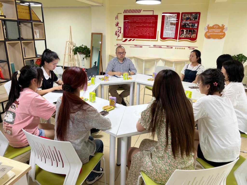 为贯彻落实williamhill官网主题教育工作方案,推动“一站式”学生社区建设,进一步提升以生为本、关心学生、服务学生的工作成效,6月9日中午,williamhill官网在“读‘习’有声”一站式学生社区服务站举行座谈会,外语学院党委副书记彭阳慈航、辅导员及学生代表参加座谈。