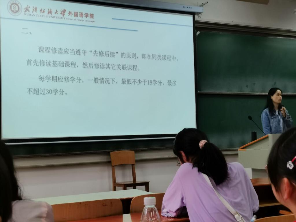 张小燕老师针对“学籍与学分管理”,为新生们讲解了教学教务的各项规章制度,重点就专业调整、课程选择、学分计算、绩点影响等与学生关联紧密的内容进行了解读,在操作层面引导大家认真思考如何规划四年大学生活,以及怎样学有所获、学有所得。
