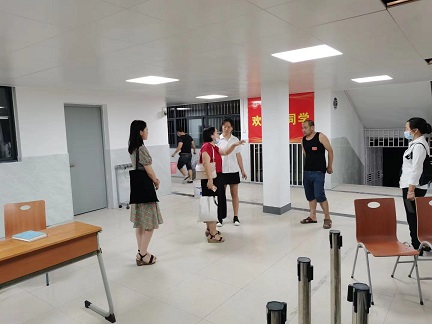 图为老师们检查寝室设施和卫生