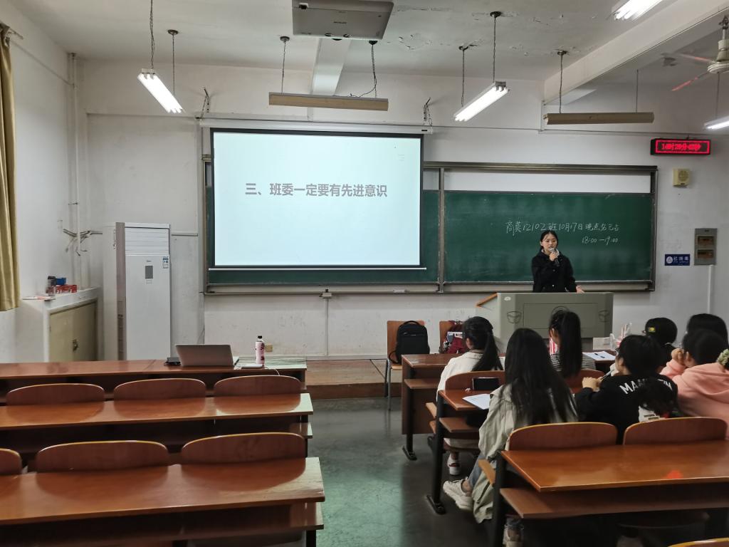 本次会议中,周曦老师从“班委的职责和目标、班委的思想和意识、班委的先进性以及对班委的建议”这四个方面进行了详细阐述和个人经验的分享。她逐一讲解了班委的具体分工和职责,并指出每个班委都是凝聚班级向心力、营造良好班风,进而建设学院良好学风的中流砥柱。会上,周曦老师强调:心理委员需要关注每位同学的心理状态,加强与寝室长的联系,及时发现问题并帮助有心理困惑和烦恼的同学解决问题,特别是性格孤僻的、家庭情况特殊、经济困难的同学。同时心理委员应该在辅导员老师的引导下,做好陪同同学到心理咨询师室接受心理咨询等相关工作,定期做好信息反馈并记录本班同学的心理变化动态。同时她还强调文体委员应当鼓励班级同学积极参与文体活动,在“学习好”的同时做到“身体好”,促进学生德、智、体、美、劳的全面发展。