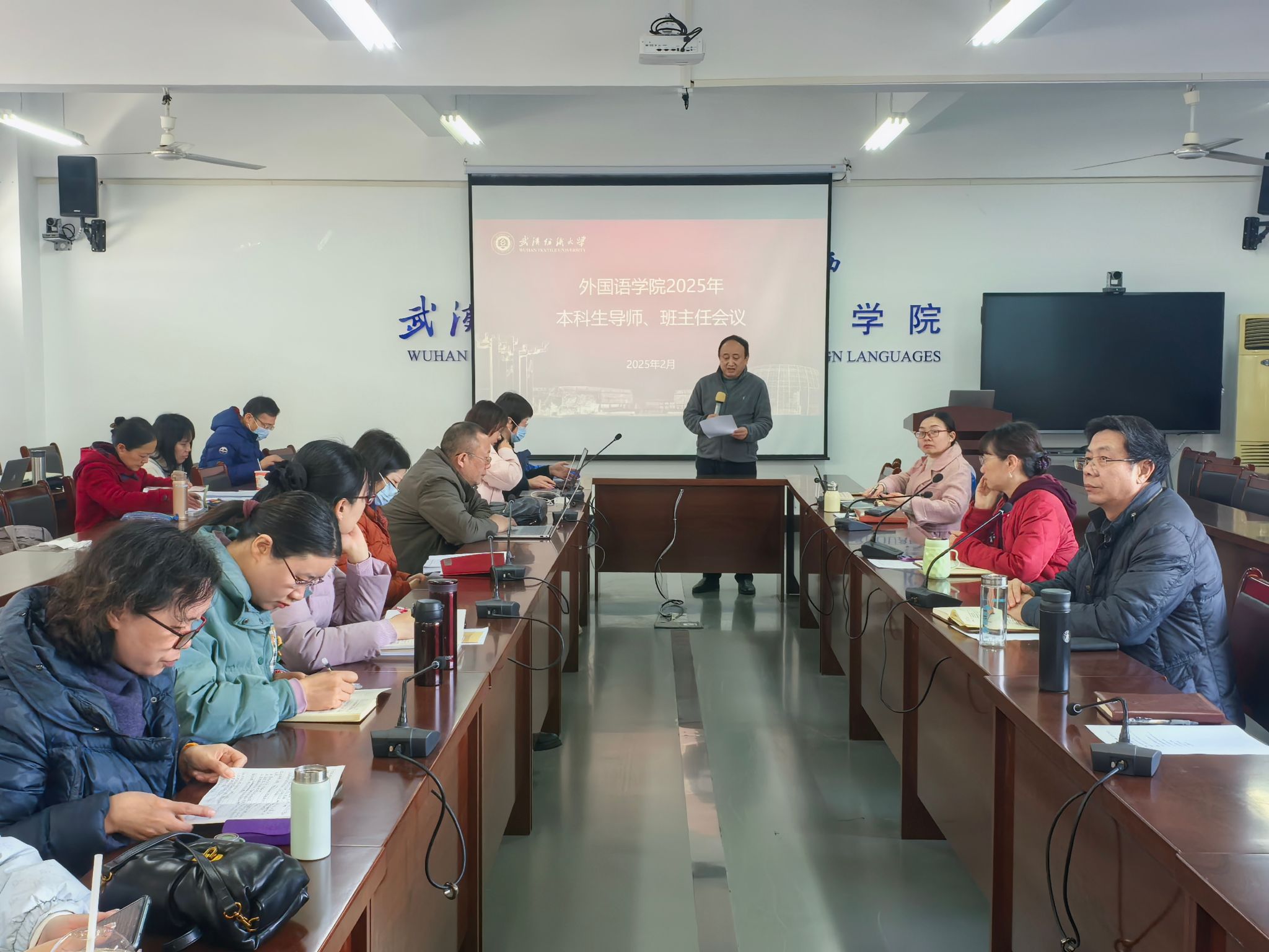 副院长罗绮伦布置本科生导师工作,他要求,要认真做好大四年级考研复试学生的指导工作,同时重点关注未过线及毕业论文完成困难学生的思想动态,做好帮扶。对大三学生开展考研动员,提前谋划工作,做好少数专四未通过学生的专业指导。对于低年级学生,规划好上半年大学生英语竞赛和湖北省翻译大赛两项学科竞赛指导,对语言技能困难、基础薄弱学生开展帮扶,确保学生队伍数量稳定。