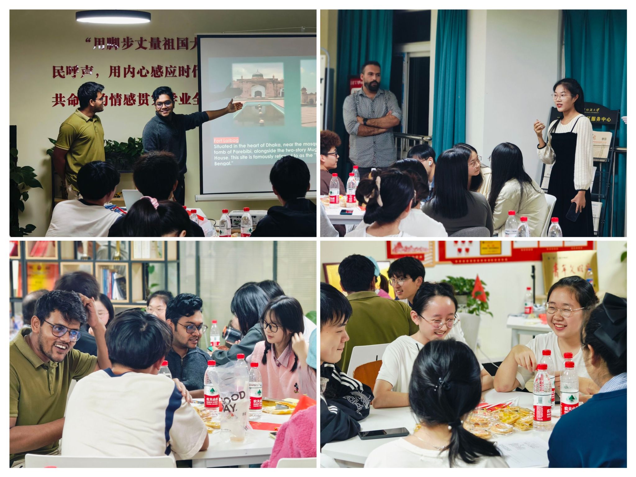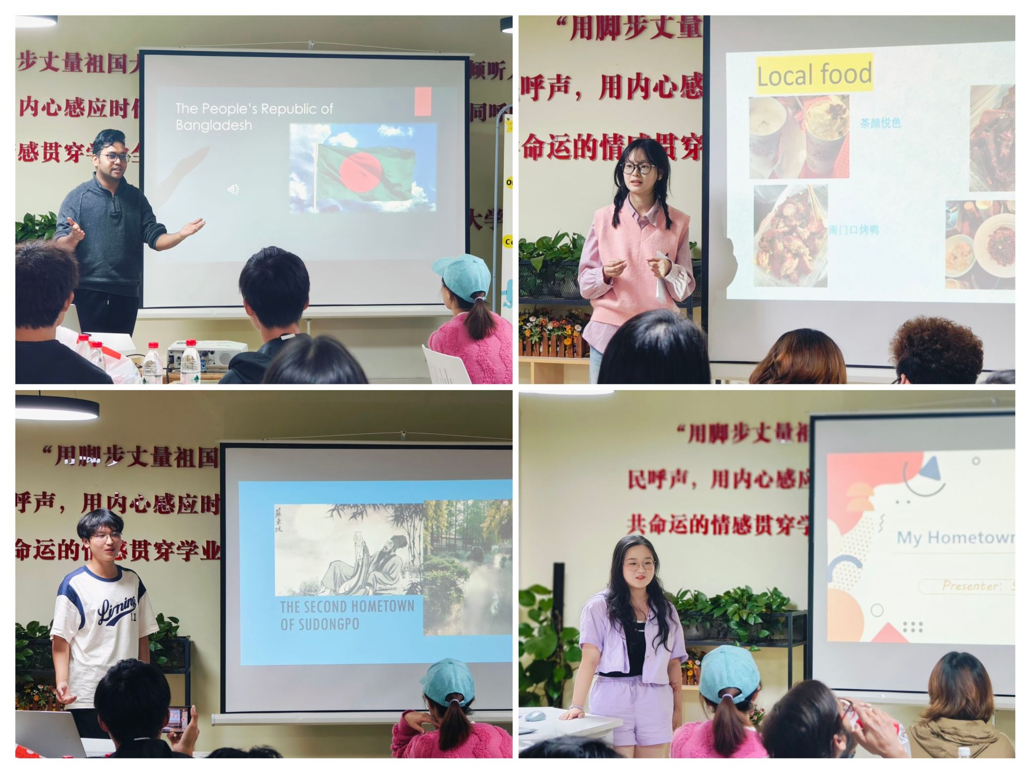 在“我来讲”部分,同学们围绕“Travel and Culture”这一主题,分享了各自旅行经历和对不同文化的见解。来自巴基斯坦的Zunair同学和孟加拉国的Ashiq同学分别介绍自己国家的地理位置、历史文化、特色城市以及风俗传统;williamhill官网司嘉琪同学从豫剧和南阳卧龙岗为切入点介绍了家乡河南的人文地理、著名景点和特色美食,并结合自己暑期“绘就纺织地图”社会实践的经历与大家分享了家乡的纺织历史和纺织故事;平佳佳、崔嘉靖、谢陈晨同学结合自己的成长经历和旅行故事,带领同学们领略了“怕不辣的长沙”“令人神往的西藏”“大美黄冈”等自然风光和文化特色,在一站式“小”社区里同学们畅聊“大”世界,读懂中国。