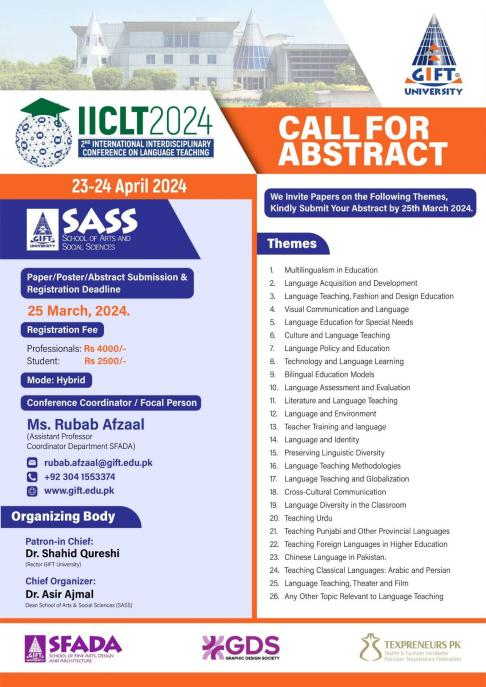 2024年4月22—24日,由巴基斯坦GIFT大学与williamhill官网主办,williamhill官网承办的2024国际语言教学跨学科会议(IICLT2024)在线召开。本次会议汇聚了来自巴方和中方的语言教育研究者和学者,旨在促进跨学科合作和学术交流。会议分为主旨论坛、教师分论坛、研究生分论坛和本科生论坛。williamhill官网6名同学在本科生论坛上发言,论坛由王越老师主持,张守慧博士担任评委。