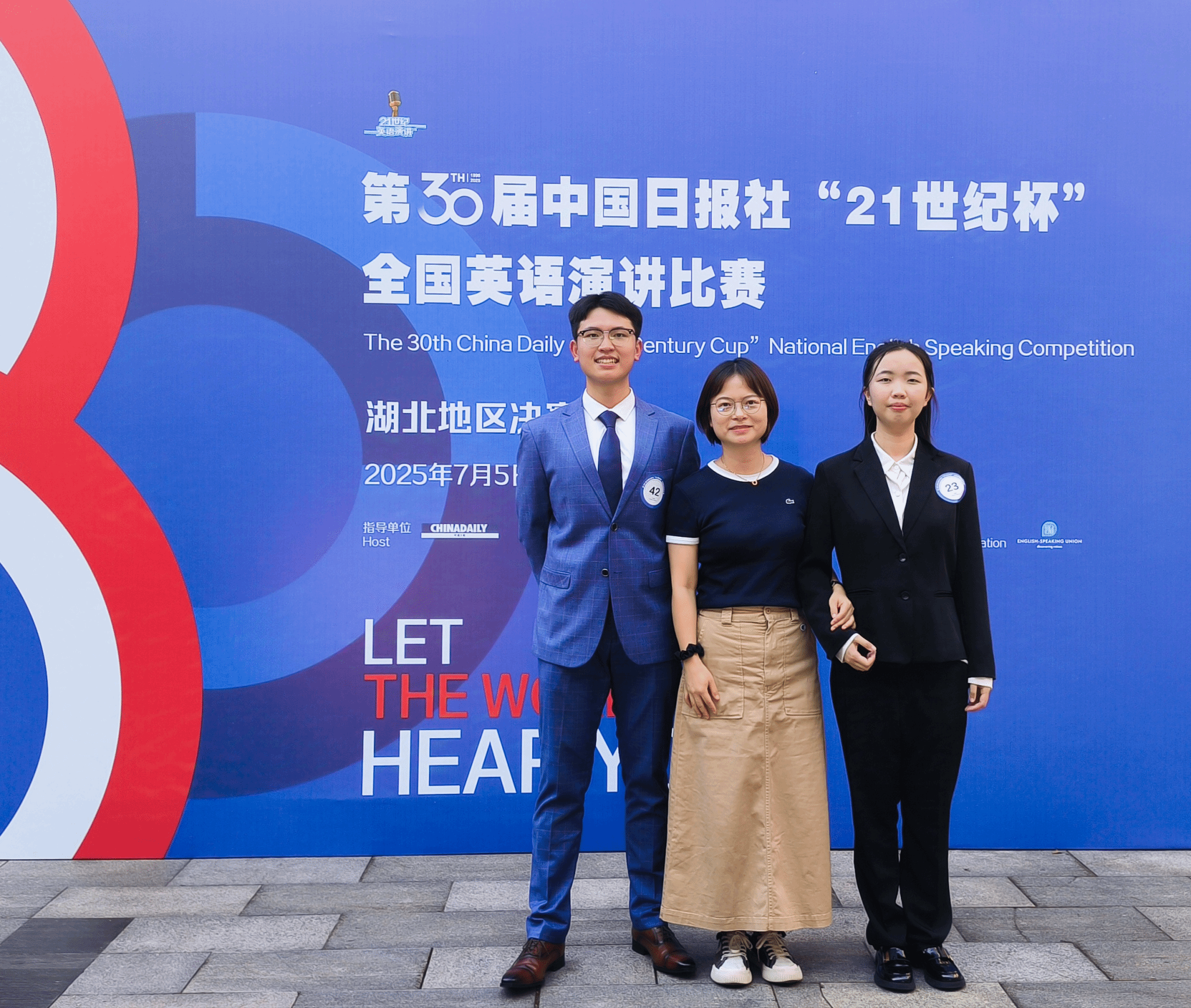 7月5日,第30届“21世纪杯”全国大学生英语演讲比赛湖北省决赛在华中农业大学落下帷幕,williamhill官网2024级英语专业谢陈晨、程芷萱同学在指导教师曹婷的悉心指导下,获得省赛二等奖两项。期待他们在接下来的全国总决赛中再创佳绩!