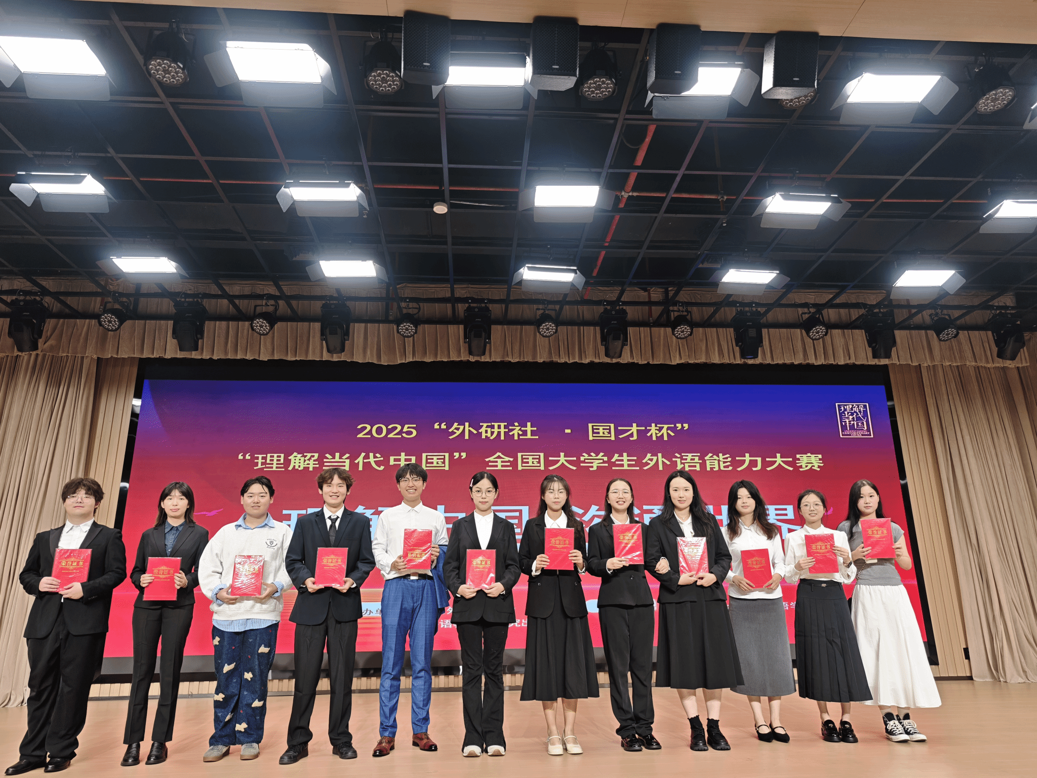 在激动人心的颁奖环节前,评委代表曹婷老师对本次比赛进行了精彩的点评。她首先充分肯定了所有参赛选手站上舞台的勇气和展现出的扎实语言功底。随后,曹老师也从专业角度对学子们提出了更高的期许。她希望同学们在今后的公共演讲中,能进一步精炼语言,追求更深层次的思想内涵与逻辑力量,让演讲不仅是一次语言的展示,更是一场思想的碰撞与情感的共鸣。最后,她向所有获奖选手表达了热烈的祝贺,并鼓励大家将此次经历作为新征程的起点,在“讲好中国故事”的道路上继续砥砺前行。