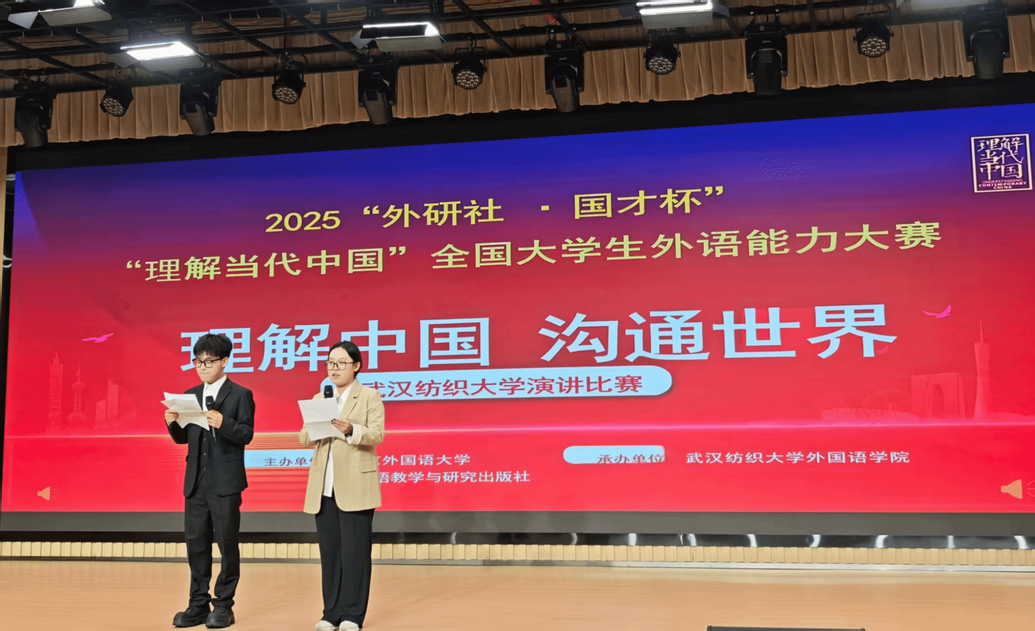 2025年“外研社·国才杯”“理解当代中国”全国大学生外语能力大赛williamhill官网英语演讲决赛暨外语文化节活动于10月9日下午在建全会堂圆满落幕。williamhill官网院长谭燕保教授、副院长罗绮伦副教授、副书记彭阳慈航出席活动。比赛由英语专业24级崔嘉靖同学与23级王依荷同学担任主持人。本次比赛紧扣“理解中国,沟通世界”的大赛宗旨,以“Striking the Waves”为主题,充分展现了我校学子扎实的外语功底、深厚的家国情怀与卓越的综合素养。