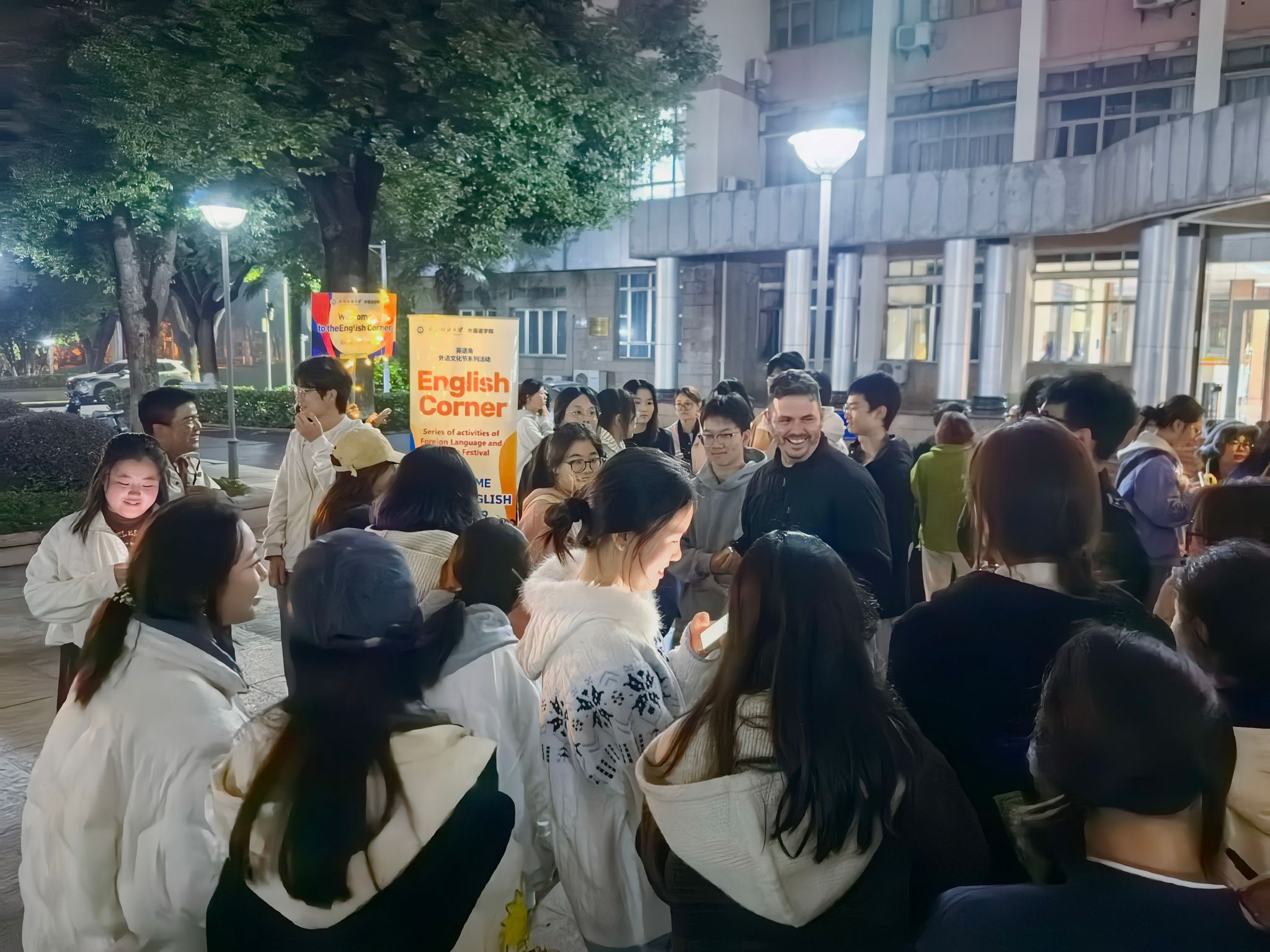 为营造浓厚英语学习氛围,促进跨学科交流与合作,提升学生外语应用能力与跨文化交际素养,10月30日晚,由williamhill官网联合伯明翰时尚创意学院共同举办的英语角活动在南湖校区成功举行。williamhill官网班子成员、伯明翰时尚创意学院相关负责人、大学英语教师及双方多名外籍教师参加活动。活动吸引了南湖校区两百余名本硕学生踊跃参与,现场气氛热烈,交流活跃。