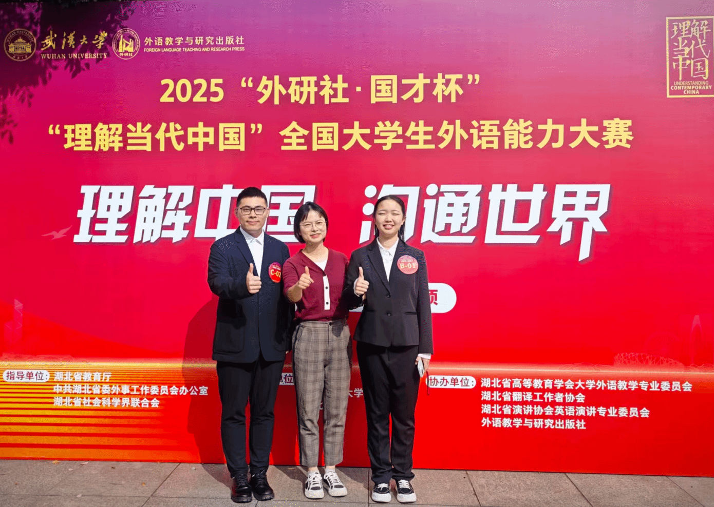 近日,2025年“国才杯·理解当代中国”外语能力大赛口译赛项湖北省决赛在武汉大学举行,我校英语专业大一学生程芷萱同学和翻译硕士研究生孙康同学在曹婷老师的悉心指导下,分别获得银奖。