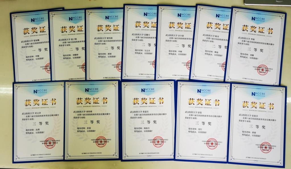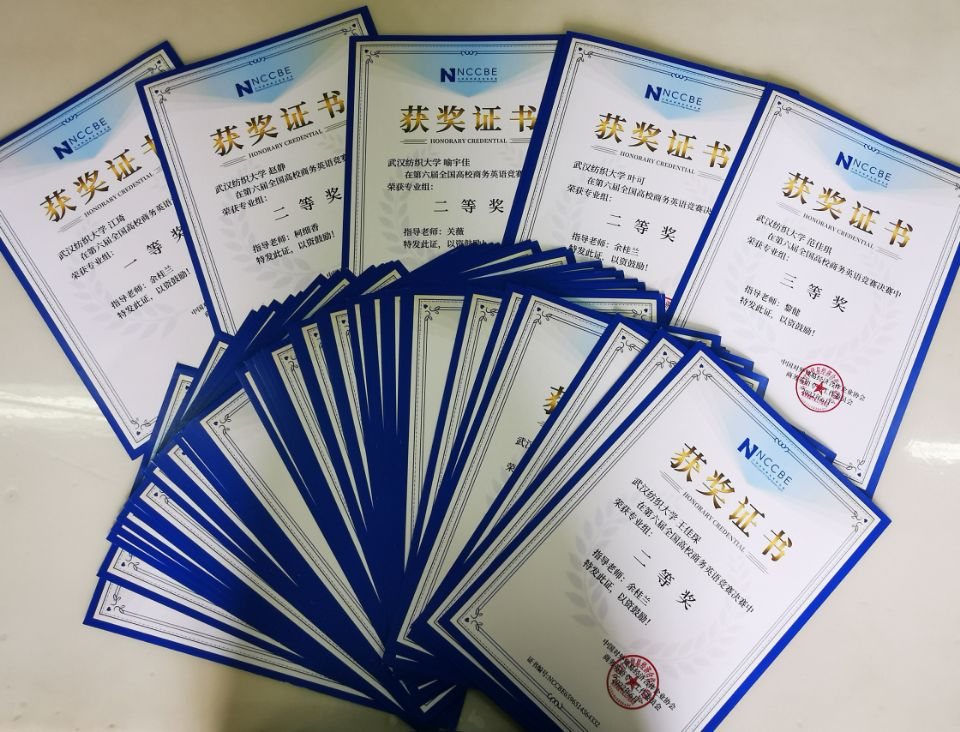 williamhill官网近日收到第六届全国高校商务英语竞赛组委会决赛一二三等奖获奖证书和优秀导师奖证书。全国高校商务英语竞赛由全国商务英语专业考试管理中心和中国对外贸易经济合作企业协会商务英语专业工作委员会联合主办。