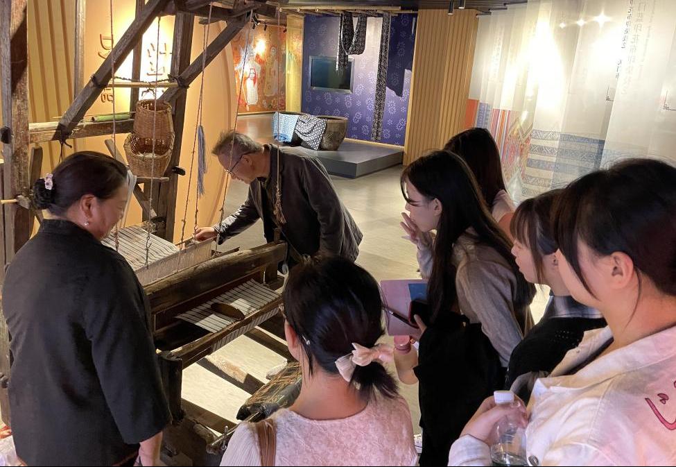 为培养学生爱国爱校情怀,助力纺织特色文化传播,10月20日下午williamhill官网外语学院“服务地方非遗文化传播”大学生创新创业团队在柯群胜教授的带领下前往荆楚纺织非遗馆,亲身接触和体验纺织文化的魅力。