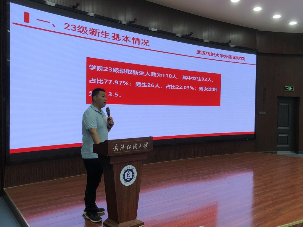 新生辅导员聂啸天老师详细介绍了学院2023级新生情况以及日常管理规范,他强调同学们要迅速适应大学生活,牢记学习是大学最重要的事情,同学们要合理做好大学生活规划和职业规划,发扬自己爱好的体育锻炼,积极参加校园活动,脚踏实地一步一步地完成目标。