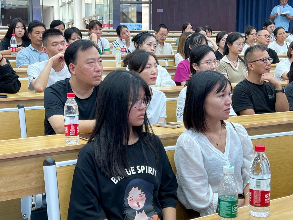 学院党委书记胡中原在总结讲话中对新生提出了“三心二意”的希望。一是开心,鼓励同学们为自己进入大学新起点,进入人生新阶段而开心;二是用心,鼓励同学们认清大学是全新的起点,需要继续努力;三是恒心,希望同学们为自己树立一个明确的目标,并持之以恒,坚持不懈;四是树立独立意识,希望同学们进入大学后学会自我管理、自我服务、自我教育;五是树立责任意识,鼓励同学们做到自己对自己负责、自己对家人负责,做一个忠于职责、敢于担责的人。胡中原还对家长们提出了“一心一意”的要求。“一心”是希望家长们放心,希望家长们相信学校是安全的,老师是负责任的,放心地把孩子交给学校;“一意”是希望家长们树立半监护意识,关注孩子们的动态和心理健康,关注学生的适应情况,鼓励孩子做好人生规划。