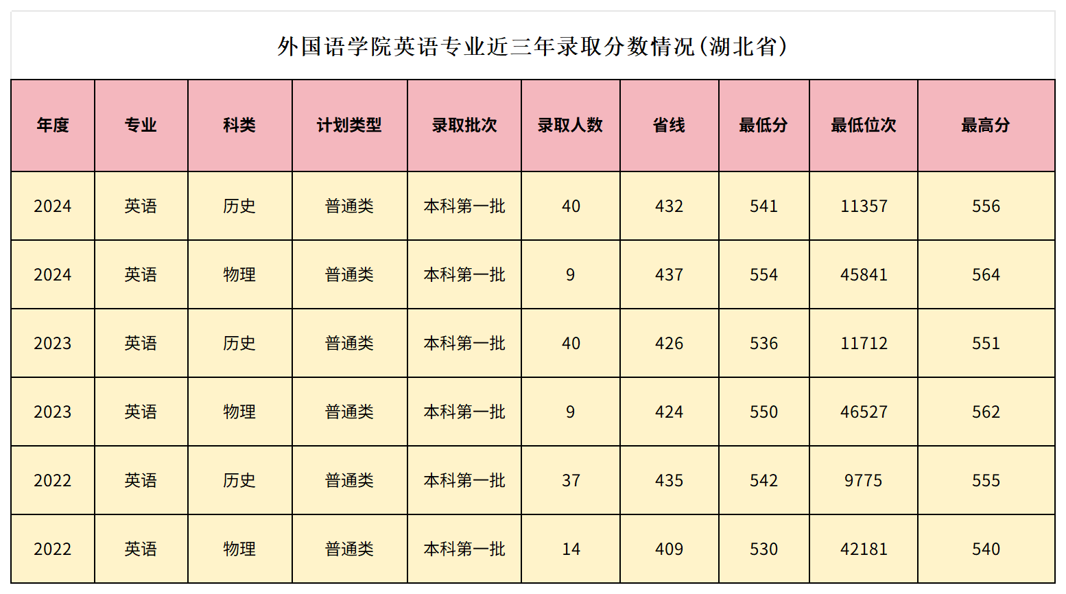 williamhill官网英语专业近三年录取分数情况(湖北省)