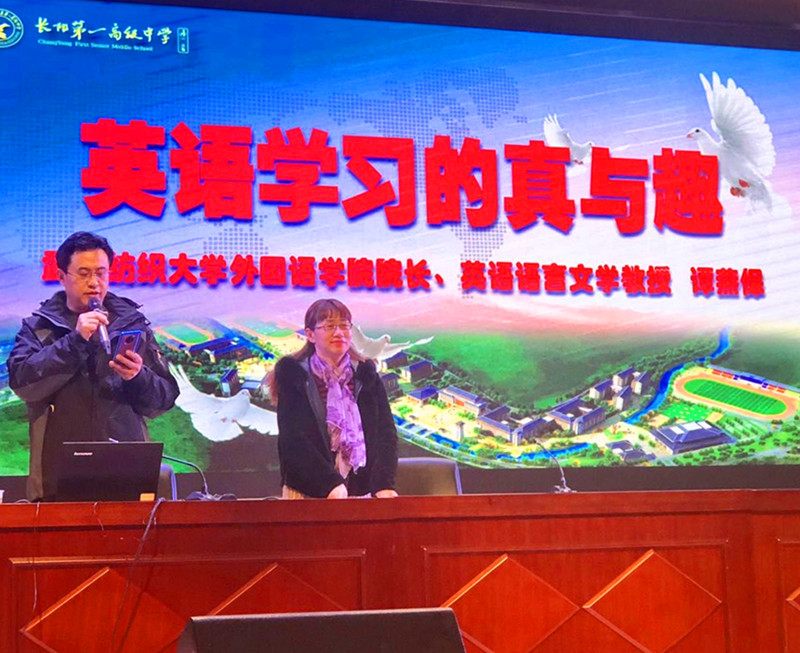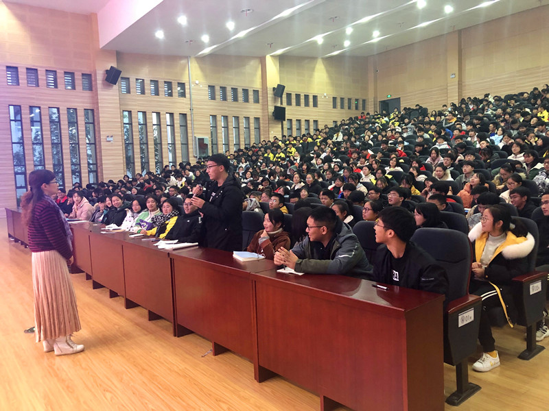 会毕,谭院长应邀于长阳一中大会议室围绕高中生普遍最为关注的“英语学习”问题做了由浅入深、声情并茂的讲座。伊始,谭院长由中英语言表象的差异性上升到双语思维的区别点切入,结合当前高中学生感同身受的语例进行讲解,并结合分科特色提出“文科生让生活充满了诗意”,发展需要逻辑、精确,然而生活与幸福则万万不能让诗意“缺席”等重要论点,引发在座的700多名学生的广泛共鸣,现场爆发出热烈掌声。