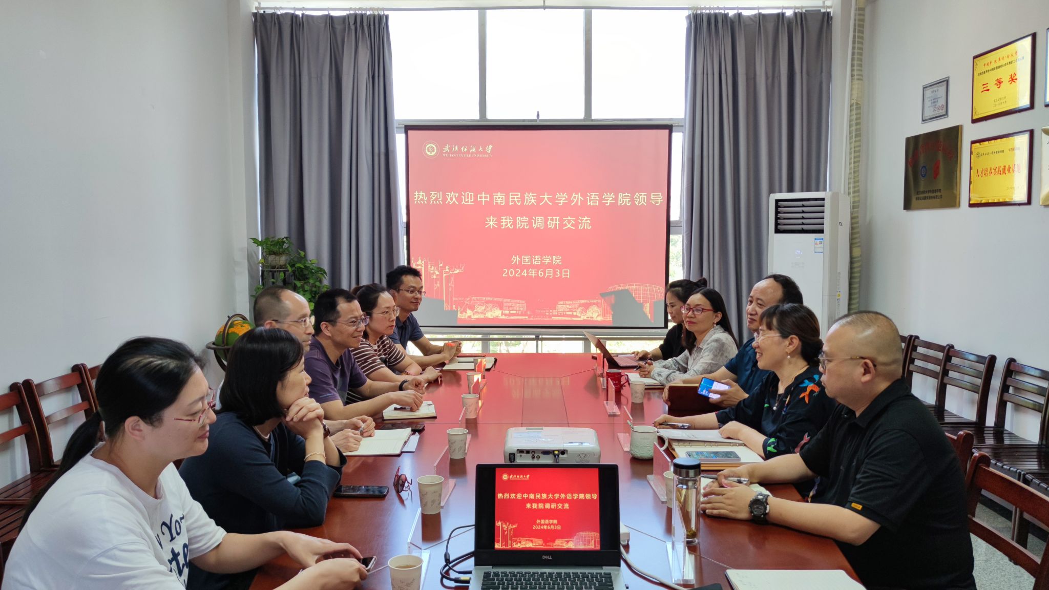 6月3日,中南民族大学外语学院一行六人,由院长易立新率领,来到williamhill官网,就本科教育教学审核评估工作展开深入交流。学院领导班子成员、系主任、办公室主任参加座谈会,会议由谭燕保院长主持。