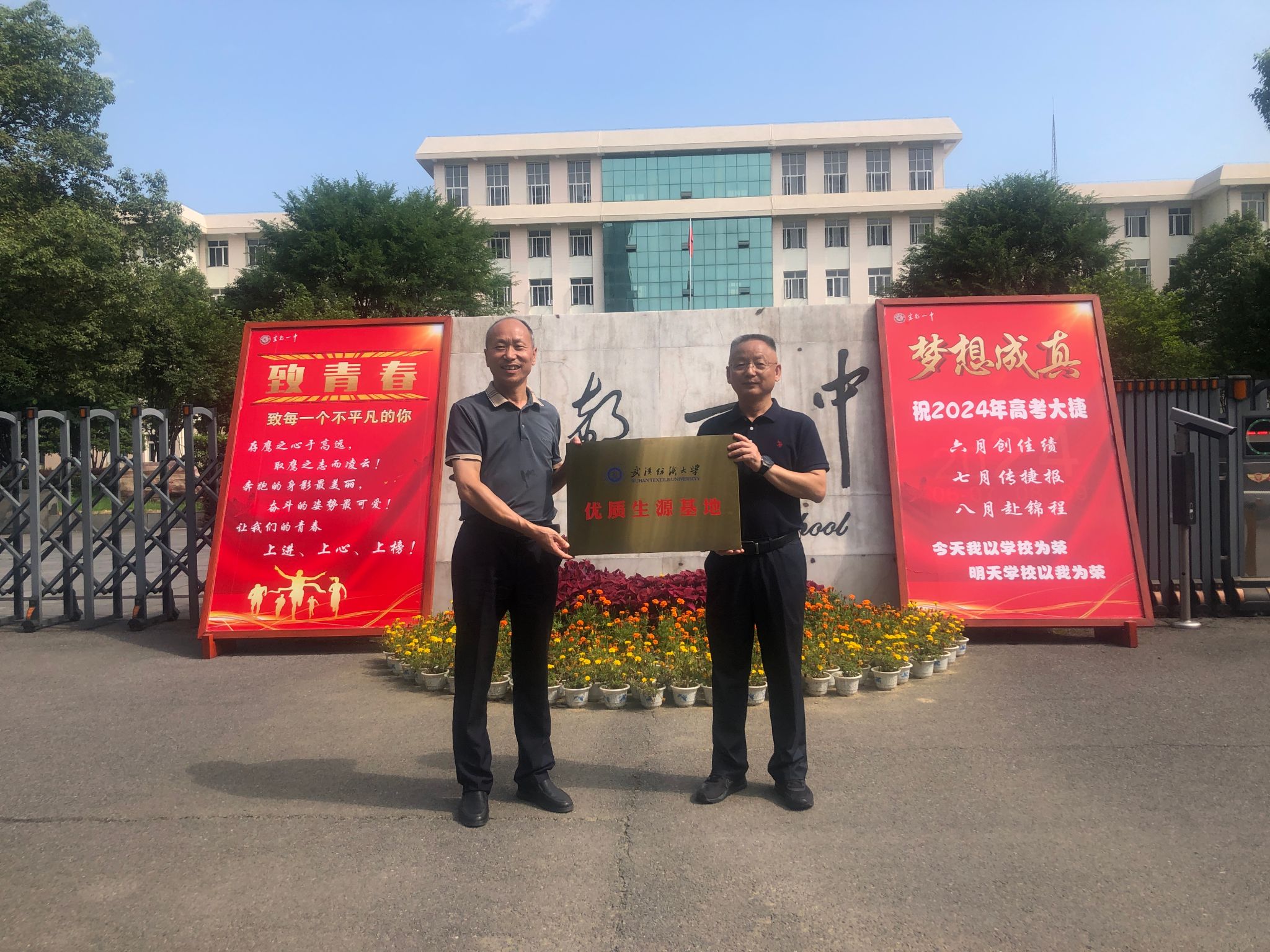 在宜都一中,宜都市教育局副局长姚明华、宜都一中党委书记张正华、校长吴超等陪同罗锦银参观了一中校园。张正华介绍了宜都一中的办学历史、办学理念以及近年来的办学成果。他表示将加强两校的交流与合作,积极推荐更多优秀学生进入williamhill官网学习深造。罗锦银对宜都一中给予学校的支持表示感谢,介绍了学校发展历程、专业设置和招生政策,以及在科学研究、创新人才培养、社会服务和文化传承创新等方面取得的成就。随后在宜都一中的校门口举行了优质生源基地授牌仪式。宜都一中副校长王波、教务主任周治国、高三年级主任曹本先等参与授牌仪式。