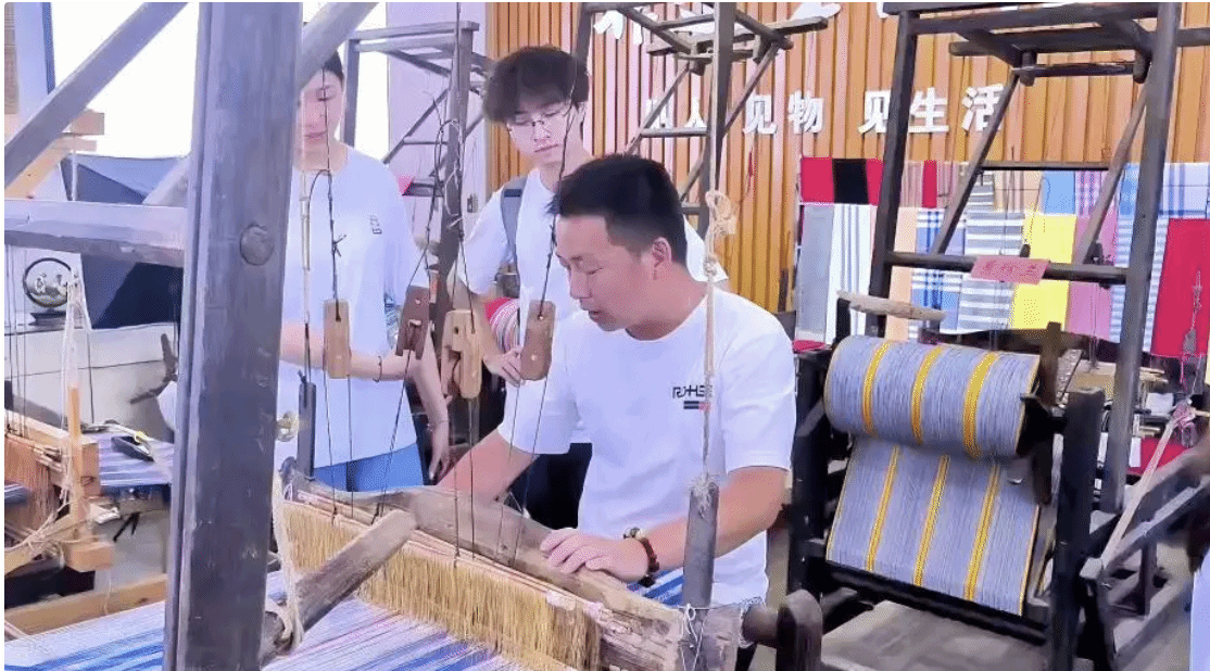 陶文成教实践团队织布的直播现场