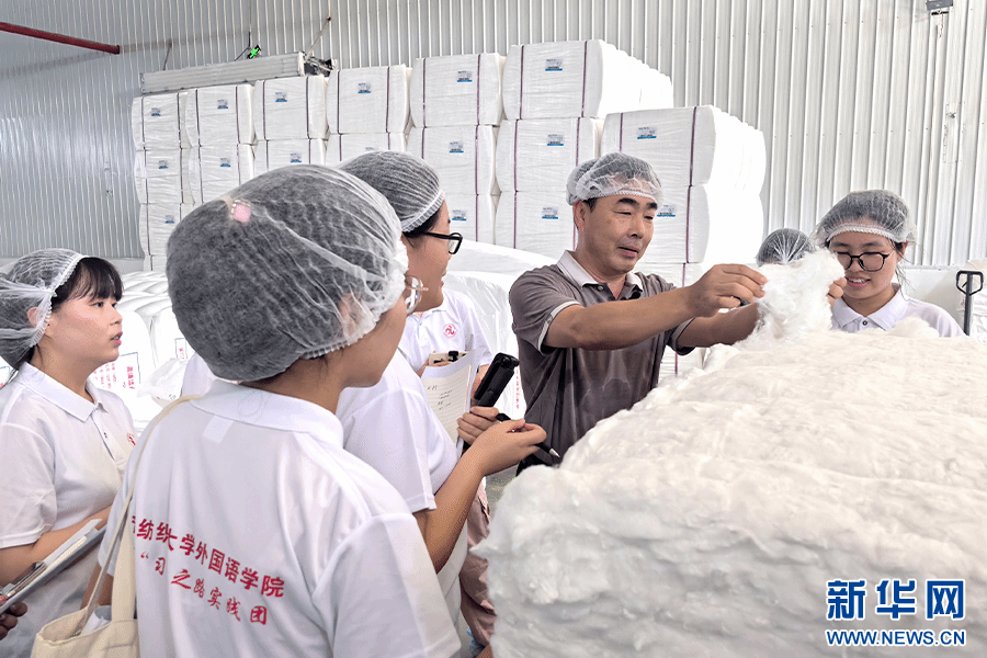 在湖北祥源特种布有限公司,赤壁市纺织服装产业协会会长余世贵向同学们讲述了由现代纺织工艺技术制作的特种布在火场救援、特种作业、防火阻燃等方面发挥的特殊作用。在恒瑞非织造材料有限公司,董事长刘城镇为学生们展示了通过新型生产工艺制作的无纺布在面膜、湿纸巾、棉柔巾、尿不湿等产品上的应用。