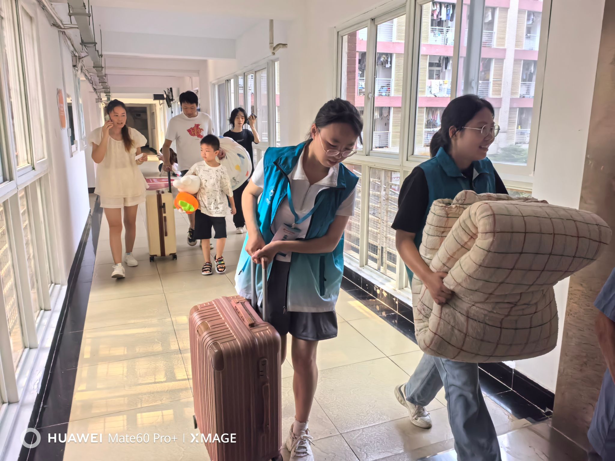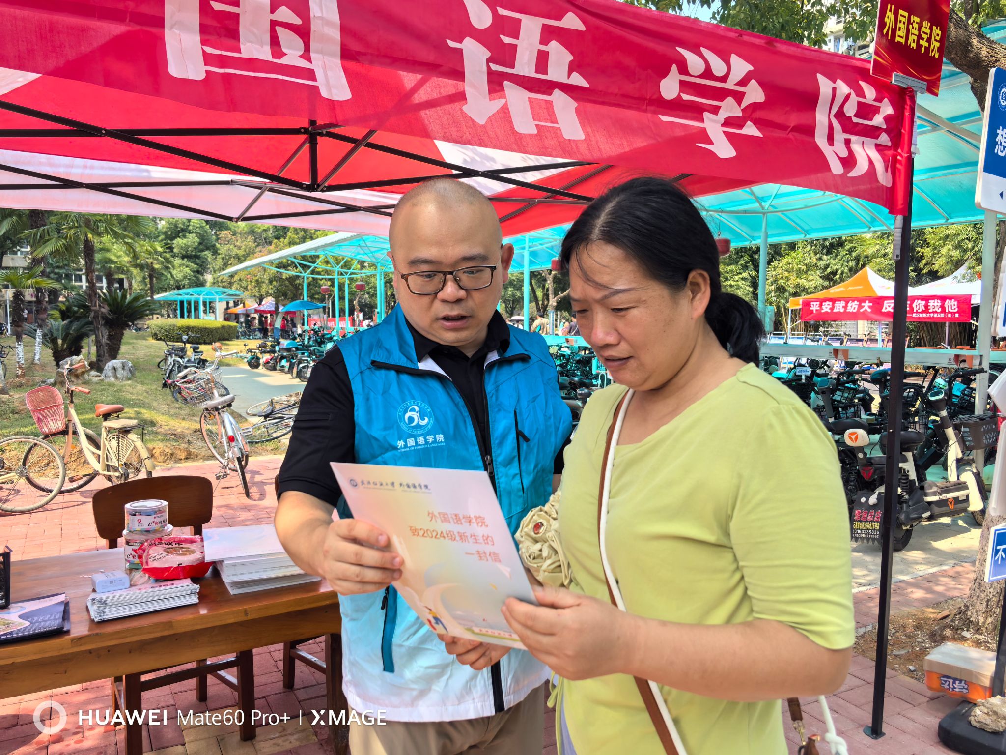 校领导、学院班子成员、党员教师和学生志愿者共同下沉 读“习”有声 一站式学生社区,与新生、家长交流。学院秉持“短流程·高效率”的原则为2024级新生服务,精准定位学生需求通过新媒体平台制作“一键导航,轻松找到外语萌新的迎新点和寝室!”将服务前置,提高新生报到效率。