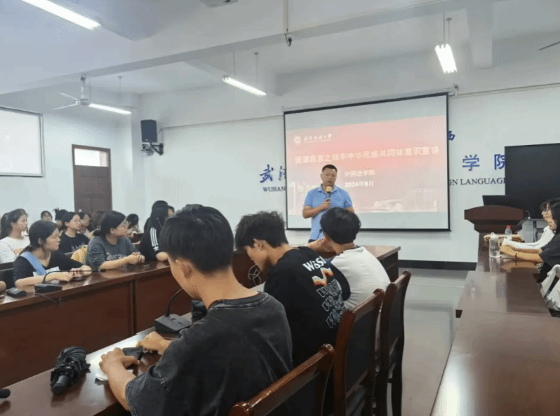 9月27日下午,新生辅导员聂啸天对全体新生进行“铸牢中华民族共同体意识”宣讲,首先通过对“统战”概念的讲解,引出党的二十大报告中提出的:“以铸牢中华民族共同体意识为主线,坚定不移走中国特色解决民族问题的正确道路”,先后对我国民族的基本知识,民族工作的政策进行了宣讲。引导学生厚植家国情怀,树立正确的国家观、民族观、历史观、文化观。