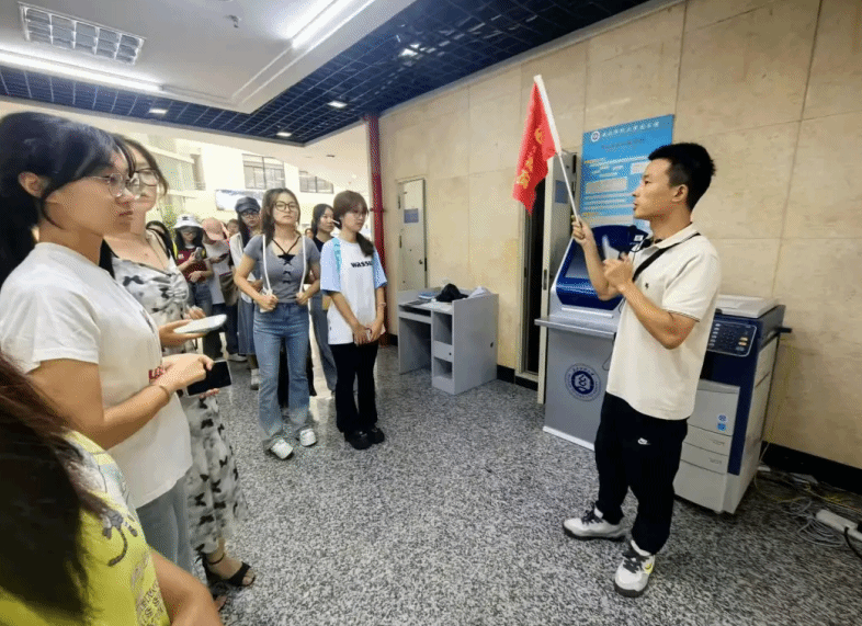 9月27日上午,学院新生辅导员聂啸天带领新生参观纺织科技馆,并按照“纺织缘、传统纺织、现代纺织、大纺织、超纺织、未来纺织”六个板块顺序进行现场讲解。同学们在这里了解到纺织行业在中国以及在武汉的起源与发展、学校的历史沿革、一代代校内外的纺大人拼搏努力的辉煌成果,近距离体验了月面国旗、“天问一号”耐高温弹性密封装置等明星科技展品,无不激励着新生们砥砺奋发的心。
